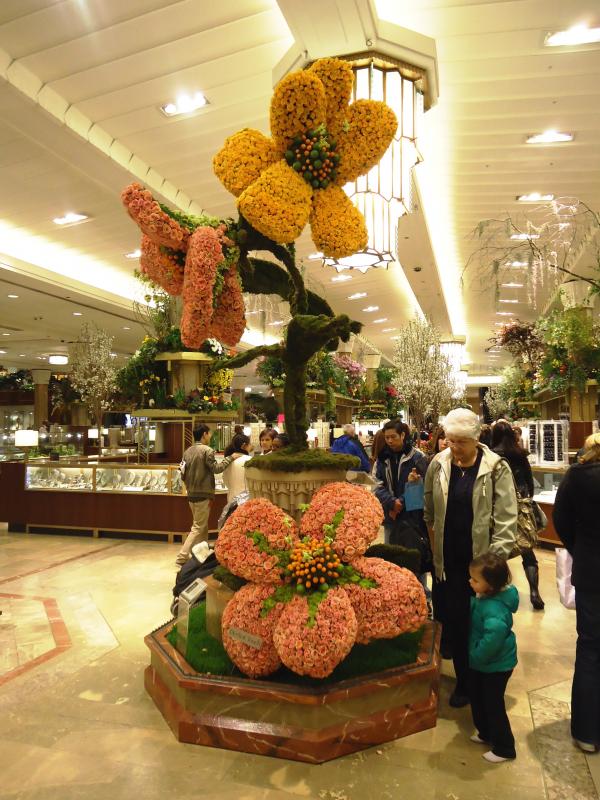 Southerner and the City - Fake Spring at Macy's I have survived my first fierce New York City winter. And I am beyond ready to see the flowers of Spring!! I have seriously considered a bon fire where I torch my black goose down goat, hat, gloves, scarf and winter boots! If I never see them again, it would be fine with me. There are finally signs of life around the city as the forsythia is beginning to bloom in Central Park and the tulips and buttercups are blooming around Columbus Circle. However, Macy's Department store in Herald Square got a jump on the season recently with their annual flower show. The first floor entrance off of Broadway that encompasses the entire cosmetics department is the backdrop for the event. The area is divided into ten different gardens. The gardens included were tropical, English cottage, hydrangea, orchid/bromeliad, antebellum, Japanese, urban oasis, miniature, desert and rooftop. There was also a Towers of Flowers Centerpiece and a Bouquet of the Day. It was breathtaking to see such magnificent arrangements of flowers, trees and bushes confined into one space. I opted out of the 20 minute tour with an overly perky Macy's tour guide armed with a portable microphone. And instead, wandered around like a star stuck tourist with two cameras hanging around my neck! One minute I would be admiring a beautiful blooming azalea bush and then I'd be sampling the latest eye cream from La Prairie. The marketing people knew who their audience was and the location was sheer perfection. You could admire the amazingly colorful flowers and then translate that inspiration into some new cosmetics for Spring. In addition to the gardens, there were also many floral presentations and seminars offered through the 15 day event. They offered everything from seminars in cooking and floral arranging to live music for the guys, children's book readings and a best dressed pet contest. I really hate that I missed that because New Yorkers take dressing their four legged friends very seriously! As many of my Arkansas friends have told me, Spring has sprung in Arkansas. We are just beginning to see the light at the very long tunnel of winter here in the city. The Macy's Flower Show was my first real glimpse at the beauty that always springs into action this time of year. But for me, it vanishes way too quickly and before we know it, we are into the dog days of summer.