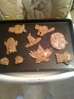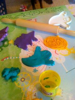 Little Hands Get Ready for Halloween Halloween is almost upon us, and we've been in full swing autumn fun! I had a cardboard house that I got at Hobby Lobby that I got on sale and was in the midst of transforming into a very detailed haunted house to keep candy in for Halloween that I wanted to show you all, but, alas, some little hands got into some big markers and let's just say we'll be transforming the house into something Christmas-y instead. How do you celebrate fall and Halloween? We started with hanging strands of orange and yellow maple leaves over our curtains and lights. We shoved some into fake plants and speared several pieces of candy corn taffy with wooden skewers to stick into plants. Talk about temptation, right? We have several fall cookie cutters, but some work better with playdoh than cookies, so we made both! We made up some chocolate chip cookie dough to use our open metal cookie cutters, and pulled out the playdoh to use the kind that only smash the shape into while the cookies baked. (My favorite cookie cutter tip: spray your pan and lay down the cookie cutter. Then, press cookie dough into the cutter, then pick the cutter up. This works about a billion times better than trying to roll out cookie dough, cut it perfectly, pick the cutter shaped dough out, and make it over to the cookie sheet, especially with little hands that like to eat cookie dough around!) We carved out our pumpkin in a happy face since London refused to have a "scary" one, and washed and dried the seeds to bake. I baked mine on 375 for about 15 minutes after coating them in olive oil, a little Cavendar's, and paprika, but no seasoning can be wrong with pumpkin seeds! Because of a very annoying issue going on with my sewing machine, I can't sew the girls' Halloween costumes, and it is already Oct. 25. It should be interesting to see what they'll end up as. Other than that, we've been making a lot of soup, apple pie, gathering acorns (for play, not food), and consuming anything that may have pumpkin as an ingredient. This is my very favorite season, only shadowed by midterms and allergies. Can you believe there's two months until Christmas as of today?! Okay, okay, I'll take it slow, but I can't wait until I get to post fun Christmas crafts. Happy Halloween everyone! Make it a safe one! [+] add comment