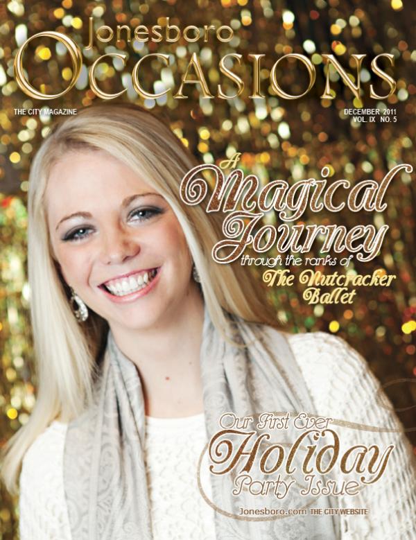 Jonesboro Occasions - December 2011 The December issue of Occasions is all about the holidays. It begins with a cover story on one of Jonesboro’s favorite Christmas traditions – the Foundation of Arts’ annual presentation of “The Nutcracker Ballet.” The ballet is a community favorite, and in the story, we meet many locals who have essentially grown up in the production. From Director LeeAnn Knierim to many of the lead dancers, participating in The Nutcracker Ballet has long been a part of their holiday season. This month’s magazine is also our first-ever party issue. In the special party section, you’ll find: Fun, Fab Gift Finds for the Hostess, all of which come from a few of your favorite local businesses; “Kathy Cardwell’s Holiday Party Tricks,” not to mention a couple of her amazing recipes in “A Party for Your Tastebuds;” our staff’s favorite holiday playlists for any occasion; and tips for how to “Spice Up Your Holiday Gathering with Live Local Music.” This issue also features: CASA’s Festival of Chairs, a silent auction for those who refuse to be silent about child abuse; Trim the Tree, a seasonal specialty store that is known for its bold, glitzy approach to holiday décor; Pamela Overstreet of Pamela Anne’s – Delivering Desserts from Down Home to Decadent, a home bakery made possible by the recent passing of the cottage food law; and Jan Bennett-Troutt’s seasonal hand painted figurines in Gallery O. And you know you can always count on Occasions for our Datebook and our Dining Guide. November was a very busy month in Jonesboro, so our December issue has event photos from the Breakfast with Ballerinas, the March of Dimes’ Signature Chef’s Auction, the DSO’s Celtic Rhapsody Gala, the Grand Opening of St. Bernards’ Health and Wellness Institute, Art with Heart, The Multicultural Dinner and Dance, the Best Buddies Kickoff, the ASU Alumni Homecoming Tailgate, the first-ever DSO Holiday House, the Jingle Bell Run, the 20th Century Club’s 110th anniversary, ASU’s Distinguished Alumni Reception, a Disney Princess’ visit to The Learning Center, Sean Shrum’s Fall Show, Sara Howell’s Fall Show, Gallery 451’s Rock and Roll Art Show and Business Occasions. For even more photos, click on “Event Galleries” on Jonesboro.com or scan the QR code in your copy of the magazine. Click HERE to read our December issue online, and as always, you'll be able to find the magazine all around town at all of your favorite local businesses. [+] add comment
