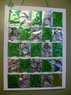 Little Hands Celebrate Christmas Every Day It's not too late for an Advent calendar, you know. Sometimes, I have ideas of things I'd like to do, but I think it's too late if the time has already started and miss out. All that to say, we made an Advent calendar and it's quickly becoming one of my favorite traditions. I made mine about 2 a.m. on Dec. 1, ahem...out of a gift wrapping box, wrapping paper and hot glue. I cut out a small green Christmas tree out of construction paper and glued it to a popsicle stick to move each day that would give the girls a visual. My favorite part of the calendar, however, are the pieces of paper inside each pocket. I made small rectangle boxes on Microsoft Word with a green outline, and with a red font, I typed up some Christmas time activities to do each day. It's fun to go each morning and move the Christmas tree, then pull out the activity.
