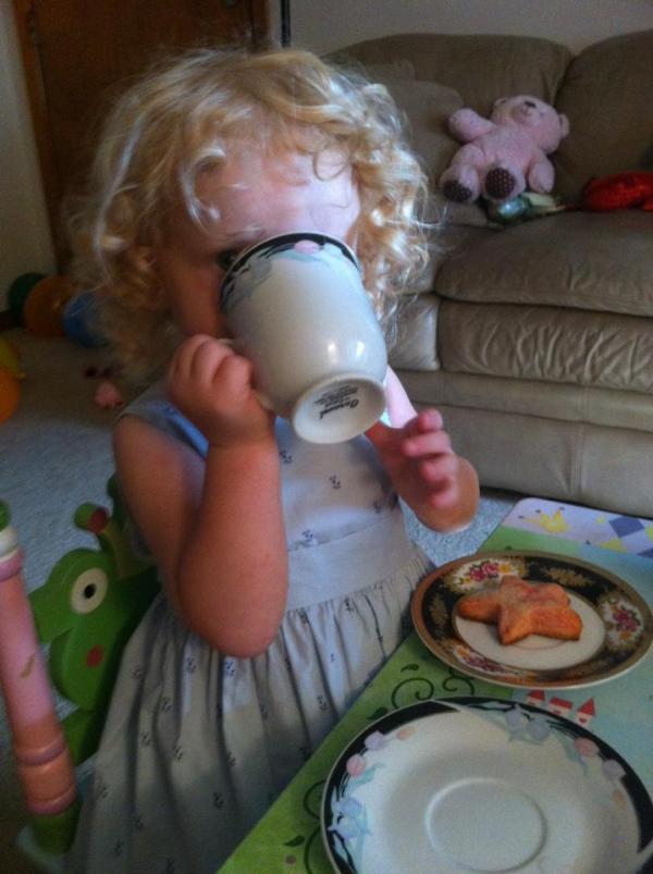 Little Hands' Tea Party Parents receive truck loads of advice. From the moment your baby bump is obviously in the aisle at the grocery store, you are fair game for any and every bit of advice a friend or stranger wants to give you. Honestly, the majority of this advice is not something you even care to follow but you smile and nod anyway. However, occasionally, you're given a bit of advice that lights up your mind and gets tucked away in there for the day when you can use it. When my oldest was just a few months old, someone told me something that was the latter of those two types of advice. She said, "you don't have to see everything that your children do wrong," and "sometimes, let them play with things they could break but are special." I love this. Who wants someone constantly getting on to you for every little thing you do wrong all day long? Not me. I'm sure my kids feel the same way. And, after a day or days or even weeks of me telling my children to "be careful" with things and "maybe later" and "that could break," I'm tired of hearing it as much as they are. To remedy this situation, I pulled out one of my glass teapots last week. (Little known fact: Most English majors seem to collect teapots.) A good friend of mine brought over a couple of extra china teacups and saucers she had at her house (she's also an English major). I pulled up the best and easiest recipe for tea biscuits I've ever found (also from that friend), and we were ready! London helped me mix all the ingredients, then we added some pink food coloring, and rolled out the dough to cut with cookie cutters and bake. When the biscuits were ready, I filled the teapot with water, and set up their little table. Story mostly cared about the tea biscuits, but London was amazed that she was being allowed to use china tea cups and pour her own water from the teapot. Seeing her eyes light up at such a treat made me certain that it's something we should do often. They could have broken the teacups, and in fact, Story has already broken one. But teacups are 50 cents at the thrift store. That is more than a fair price to finally get to say "yes" instead of always saying "no," and letting my little girls dress up in pretty dresses and have a tea party. Especially for no other reason than an afternoon of "yes" instead of "no." Hope you'll say yes to something for your little ones today.