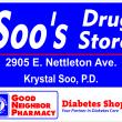 Soo's Drug & Compounding Center 2905 E. Nettleton Ave. Jonesboro, AR Phone: (870) 932-6930 Hours: Mon. - Fri. 9 a.m. to 7 p.m., Sat. 9 a.m. to 3 p.m., Sun. 1 p.m. to 5 p.m. View Website Get Directions ![]() | |