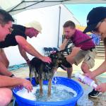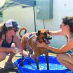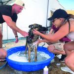 Description: Volunteers from the Jonesboro Young Professionals Network bathed dogs for donations outside Native Brew Works on July 23. Proceeds from the Dog Days of Summer event will benefit the Northeast Arkansas Humane Society. Lolly Gourmet Popsicles and Hollywood Feed also participated in the event. Photo by