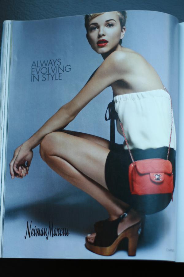 Southerner and the City - Behind the Scenes of a Neiman Marcus Fashion Shoot I have a confession to make. I am addicted to all things fashion related! Since my childhood, I have been inspired and captivated by pretty clothes, shoes and accessories. It is all directly linked to my incredibly talented mother, Chloe, who can create just about anything from a piece of fabric. She and I spent countless hours in fabric stores pouring over patterns and searching for the perfect fabric and trims. We would design a dress and she could put it together with various patterns. She doesn't sew for me anymore but I still have that same love for fashion and really well made clothing. You can imagine my sheer joy when I was invited to a recent photo shoot for Neiman Marcus here in New York City. It was a combination of three of my favorite things - fashion, Neiman Marcus and New York City. Within the first few weeks of moving to New York City, I was introduced to Georgia Christensen. Georgia had previously worked with Neiman Marcus but brought her family to New York about 10 years ago when she took a job with Victoria's Secret. As it turns out, Georgia was about to head back to Texas and take over as Creative Director at Neiman's. In her role, she is responsible for crafting the overall look and feel for the brand and ensuring the creative supports for the marketing objectives of a given project. In January, I met Georgia at Hudson Studios for a Spring ad campaign photo shoot. Hudson Studios is a really neat place where at any given time there can be up to five different photo shoots happening at the same time in various studios. It was exactly what I had imagined the studio would look like. It was spacious, white and well lit. There were lots of people milling around and getting prepared for the shoot. Of course, there was the model, Merethe, make-up artist, hair stylist, photographer, Diego Uchitel and his team of assistants, and the stylist Karina Givargisoff and her team. Producer, Cynthia Cohen from Right Arm Productions over saw the entire crew and made sure everything ran smoothly. From the yummy food down to the booking of the team of creative professionals, Cynthia had it all covered. Georgia developed the overall design and photography direction and under her guidance the crew of creative minds made it happen. The team was working on the Modernist mailer that was sent out to Neiman Marcus customers. As you can see from the photos there were several different looks in the piece. The shoot took place over two days and the final product was really impressive. It was interesting to see the final product knowing all of the work that went into each photo. >From the prepping of the model and constantly changing her look, to watching the stylist work her magic in pulling together each outfit, I saw firsthand just how much work goes into putting together a fashion photo shoot. The Prada dress used in the shoot was beautiful and cut to fit a broomstick. Merethe is obviously tall and slim and the dress didn't even come close to zipping up. No one was sure why the dress was cut to fit a Barbie doll, but from the images you can't tell that the other side was nowhere close to being zipped. That's where double sided tape and pins come into the picture, so to speak. The looks in the piece were from many of my favorite designers. There was Celine, Givenchy, Rick Owens, Dries Van Noten, Prada, Lanvin, Roland Mouret and Chanel. And as you can see, the model, Merethe, made each piece come to life, along with some perfectly executed styling from Karina. It also helps that Merethe is close to six feet tall and 19-years-old! So the next time you feel like you aren't as pretty as a model in an ad campaign, keep in mind that most of them are in their late teens and early twenties and REALLY tall. Youth is clearly still on their side! Good genetics also help, too. When I received the piece in the mail, it was really cool to see the finished product. After pouring over hundreds of images, Georgia selected the best of the best and the results were sheer perfection. A few weeks later while I looking through my In Style magazine, I ran across another image from the shoot. This entire look is Chanel and one of my favorites! Yet again, Merethe makes anything look amazing! To have a view from this side of fashion was such a treat for me. I've often wondered how these shoots happen and what is involved in putting it together. To borrow Hillary Clinton's phrase, it takes a village of creative minds to make it happen. [+] add comment
