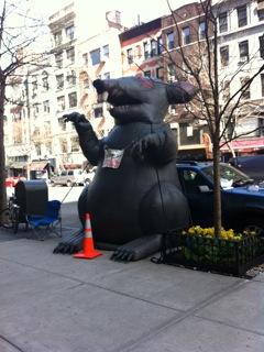The Southerner and the City: Jonesboro vs. NYC Vermin I am always thinking about and noticing the dramatic differences between life in Arkansas and life in Manhattan. The obvious difference is the number of people in Manhattan vs. Jonesboro. Then there are other things like the absence green spaces and front yards in Manhattan. For me, it is the smaller things that seem to stand out more than the larger ones. On a recent trip back to Jonesboro, I was once again reminded of how different the two worlds really are! As I stepped out of my car (another thing I don’t have in NYC) and into the garage, I noticed something by the back door of the house (I only have a front door in NYC). Upon closer inspection, I came to a screeching halt! My ever so trusty Terminix sticky bug trap had a visitor! A snake!!! It was small, green and totally harmless. Doesn’t really matter in my opinion though as I am terrified of snakes in any shape, form or fashion. The one exception would be snake skin stilettos. Those I can live with. Being that the snake was stuck in the trap, I knew it was going to die a slow death by the backdoor in the garage. After 24 hours, I got up the nerve to sweep the trap with the snake attached out of the garage and left him to wither away in the grass. I’ve been told by trusty sources that the trap is still in the grass, but the snake is nowhere to be found. I would almost guarantee that I will never see a snake outside my front door in Manhattan. The main reason being, I live on the 26th floor of a building. Unless a neighbor loses a pet snake and it makes its way to my floor, I think I’m safe from the slithering menaces. I’m also not surrounded by 30 acres of critter filled woods anymore. I remain a little creeped out from having lived “in the woods” anyway. I grew up on the prairie on Central Arkansas and prefer to look out and see for miles. Now I can look out and see lots of buildings and people. So I’m more likely to find a rat outside the door! A rat I can deal with. But I never expected to see a larger than life rat when we moved here. It wasn’t long after we arrived in NYC, that I saw a gigantic inflatable, beady eyed rat standing outside an apartment building. I was baffled at first as to why there was a HUGE rat on the sidewalk. Was it a test run for a Macy’s Thanksgiving Day Parade balloon? Or a practical joke? No. This rat is what shows up outside a building that doesn’t use UNION labor for anything from construction workers to doormen and concierge. Unions are obviously a big deal in this city. Pissing them off is obviously a bigger deal. It has been said the unions are the modern day mafia in this city. I would have to say I’d much prefer a brigade of inflatable rats to even the tiniest of snakes. And with the absence of winter in both Arkansas and Manhattan, we are all likely to see more snakes and rats in both locations. Thanks to Facebook, I know that cotton mouths and copper heads are already slithering around down south. As for the rats, well they are a constant during all four seasons in Manhattan. For more on D.J.’s adventures in the Big Apple check out her blog at www.djduckworthyoga.com/blog Follow her on twitter @mrsdjduckworth and on Facebook at D.J. Cunningham Duckworth. She is also a contributor to www.themoms.com [+] add comment