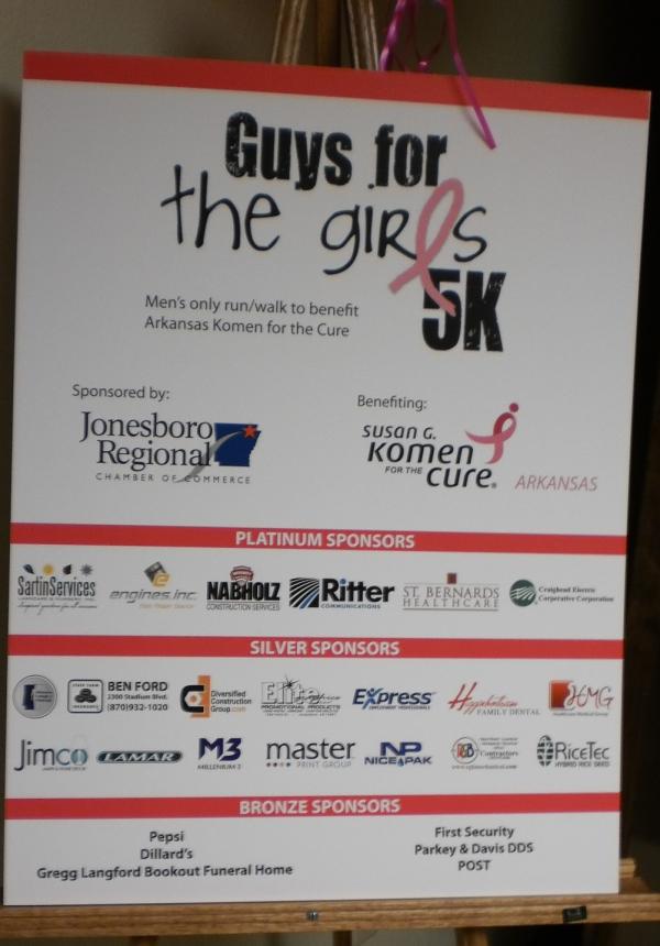 Men in Pink It is funny how our minds get conditioned. When most of us see a pink ribbon we immediately think “breast cancer”. So, what does our brain click to when we see a group of men in pink tutu’s, “save the boobies” t-shirts, and in general, completely attired in pink ribbons? It must be the Guys for Girls 5 k run in Jonesboro! This was my first Guys for Girls event and I am impressed. I had heard rumors about the crazy socks and the men in tutus, but I am glad I did not miss seeing it LIVE! What I was not prepared for was the young men and boys who braved the “macho” imagine and donned pink for the women they love and loved. I am including one young mans face who I snapped a picture of at the finish of his run. His face says it all. Tired, weary, and ready to rest. His battle to complete his task was only a small token of his understanding of the sacrifice and fight it takes to rage the war against breast cancer. So many faces and names. Everyone left scared in some way by breast cancer. Each finding their own way to show this understanding. I was blessed to have two such young men join me on my “cheering” corner in Downtown Jonesboro. Thomas and William Selden. I met their mother, Doreen from KASU radio, through other community events in Jonesboro. I asked her if she would bring her family to help me and my mother at our corner to cheer the men on. I asked for their help, unaware that their family had been directly affected by breast cancer. I was worried that two young men might be hesitant to come out in the rain and wear the pink leis and feather boas I had brought to the race. I was worried for no reason. As we stood in the rain sorting through our pink gear, the boys informed me that they had a grandmother who had passed away from breast cancer. I was struck by their bravery; just to say the words out loud is difficult for most of us. But to share with me this private tragedy upon our first meeting showed that they understood better than I did, what this day was really all about. I guess I am an outsider. I have only witnessed the toll breast cancer takes on a family. I watched my own daughters struggle with their grandmothers battle (my ex-mother in law), but I have not been directly affected by the women in my life. For this I am blessed. So, as an outsider who has participated in many breast cancer awareness fundraisers, it took two young men to remind me why we show up on a rainy day at 7 am in the morning. Why men of all ages, young and old, put on tutu’s, pink socks, feather boas, and the alike. It is important for funding the battle in reaching a cure. It is only slightly to laugh for a moment in the face of a devastating challenge. It is mostly about having a safe place to share. Honoring the women these men love. Remembering those that could not be there. To allow the men to stand up and say “I would sacrifice all I have” to show my love and prevent you from suffering. The men in pink and wearing tutu’s and lace, represents the giving of themselves, of who they are (not usually in pink), for the women they love. This giving of themselves does not begin and end with the “Men in Pink”. It starts long before race day. The volunteers and corporate sponsors make it possible for these men and their families to have this special day. I am including a picture of the sign that lists all the corporate sponsors. I am sorry I do not have a list of the people who volunteered their time; but it is long. Thank you to each of you for making this possible. I would also like to thank my company for all their support. The management and owners of Gregg Langford Bookout Funeral Home. Their support of my Community Ambassador work has given my an opportunity to experience incredible events like the “Guys for Girls”. Through this community project they began, my life has been enriched beyond what I can put into words. Please support our local businesses that sponsor charitable events like this one throughout our community. When you see that man at the gas station wearing a pink t-shirt; read the sponsors names on the back! These companies keep our community strong and help create caring young men like the ones running and cheering at 7 am on a Saturday in the rain! [+] add comment |
